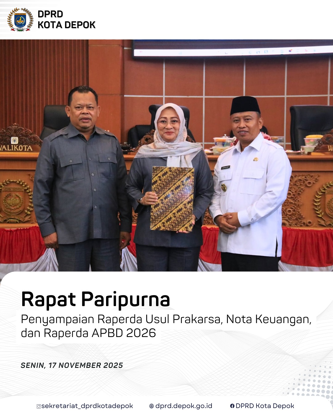Rapat Paripurna ini menjadi bagian dari komitmen DPRD Kota Depok dalam memastikan proses pembahasan peraturan daerah dan anggaran berjalan transparan, akuntabel, serta sesuai ketentuan perundang-undangan.
